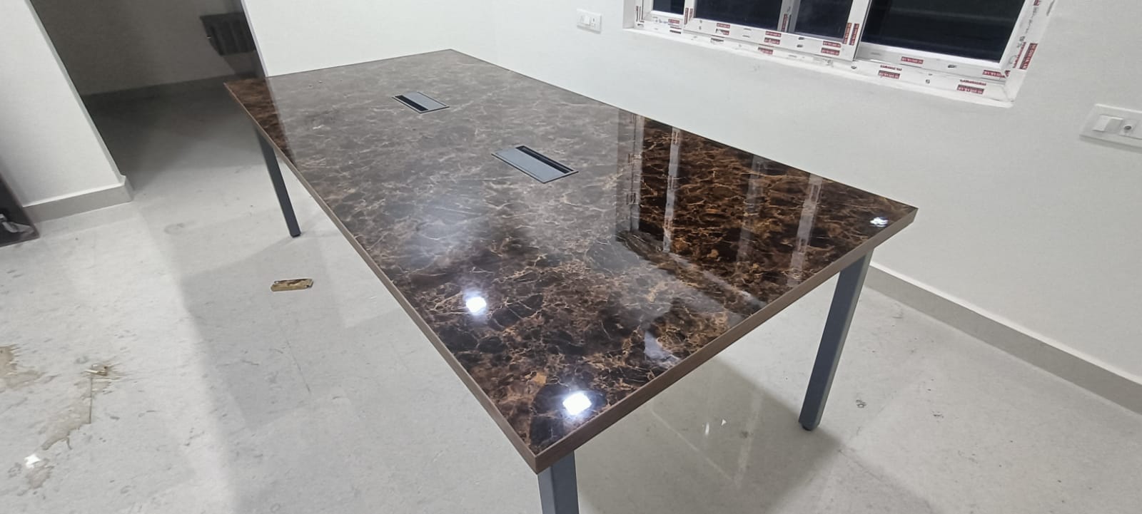 Features: * 4 x 2 feet seating * integrated raceway * Ms based powder coated legs * Gray dual side sandwich glass