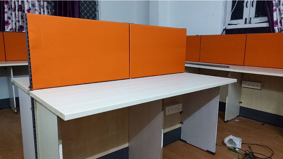 Features : * Modular frame based 4 feet height Cubical * 4 x 2 feet table top * Customized Pin and writing board Raceway for network and electrical usage.