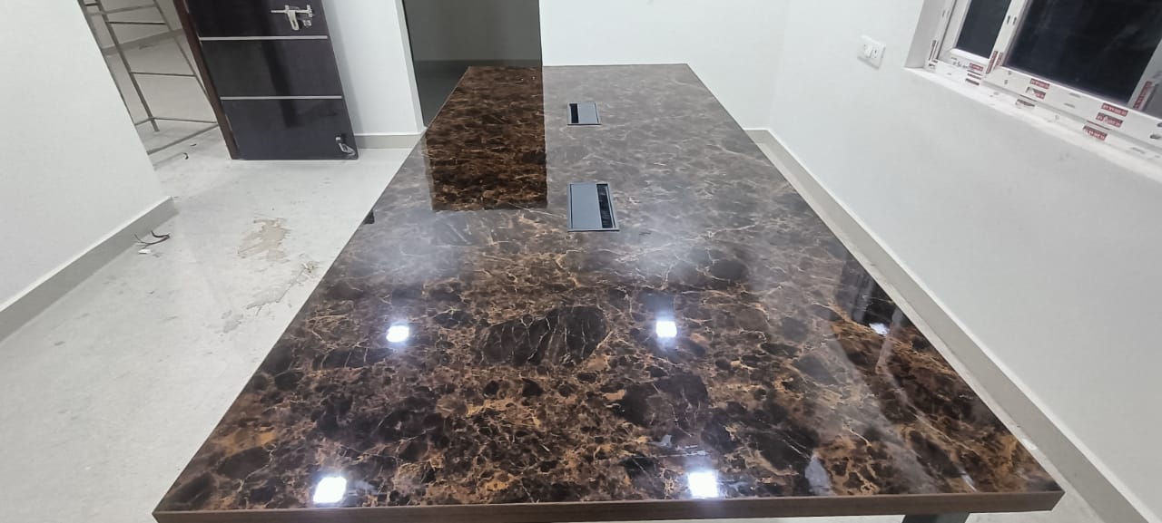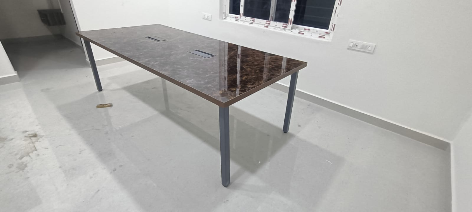 Features: * 4 x 2 feet seating * integrated raceway * Ms based powder coated legs * Gray dual side sandwich glass